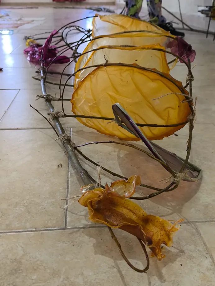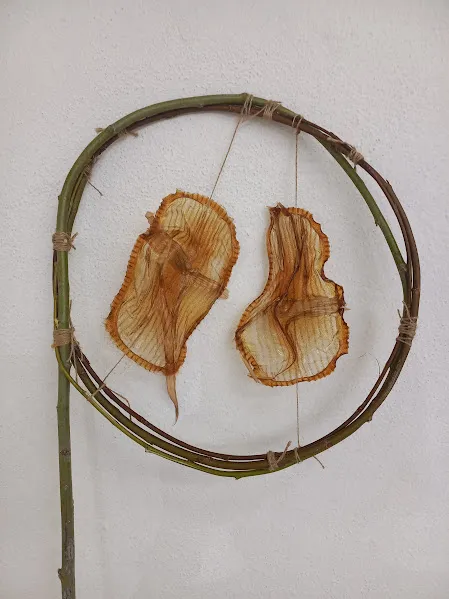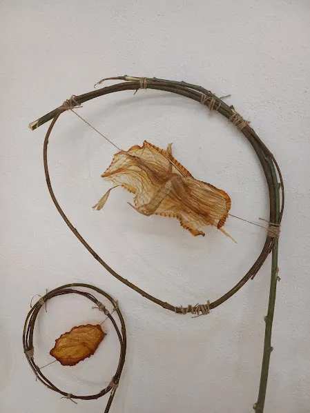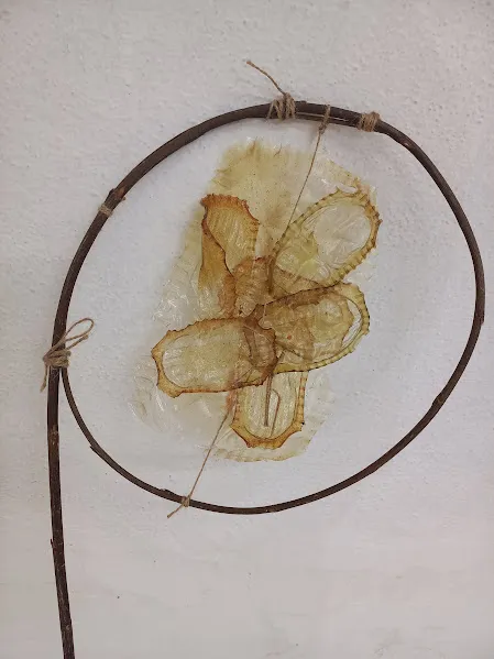 Investigación realizada para el proyecto elemento primario , presentado en la Bienal internacional de arte Valcheta 2024. Piezas fabricadas con biomateriales, coloración con tintes naturales, principalmente especias que aluden a la coloración de los macroinvertebrados del arroyo Valcheta.